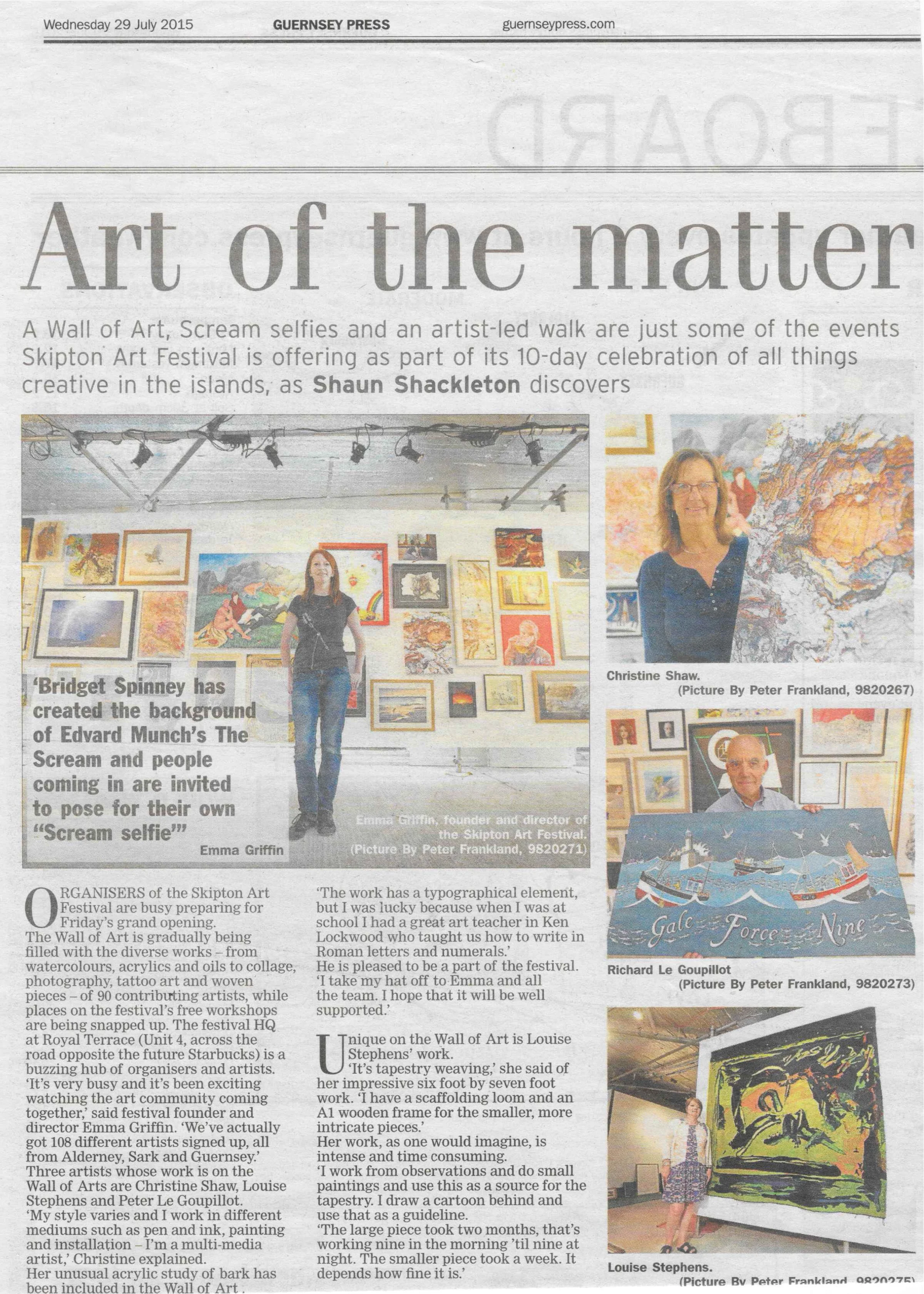 The Skipton Art Festival launched in 2015 on the island of Guernsey in the Channel Islands. I was appointed the festival director and chairperson of the Guernsey Art Network at the age of 26.
